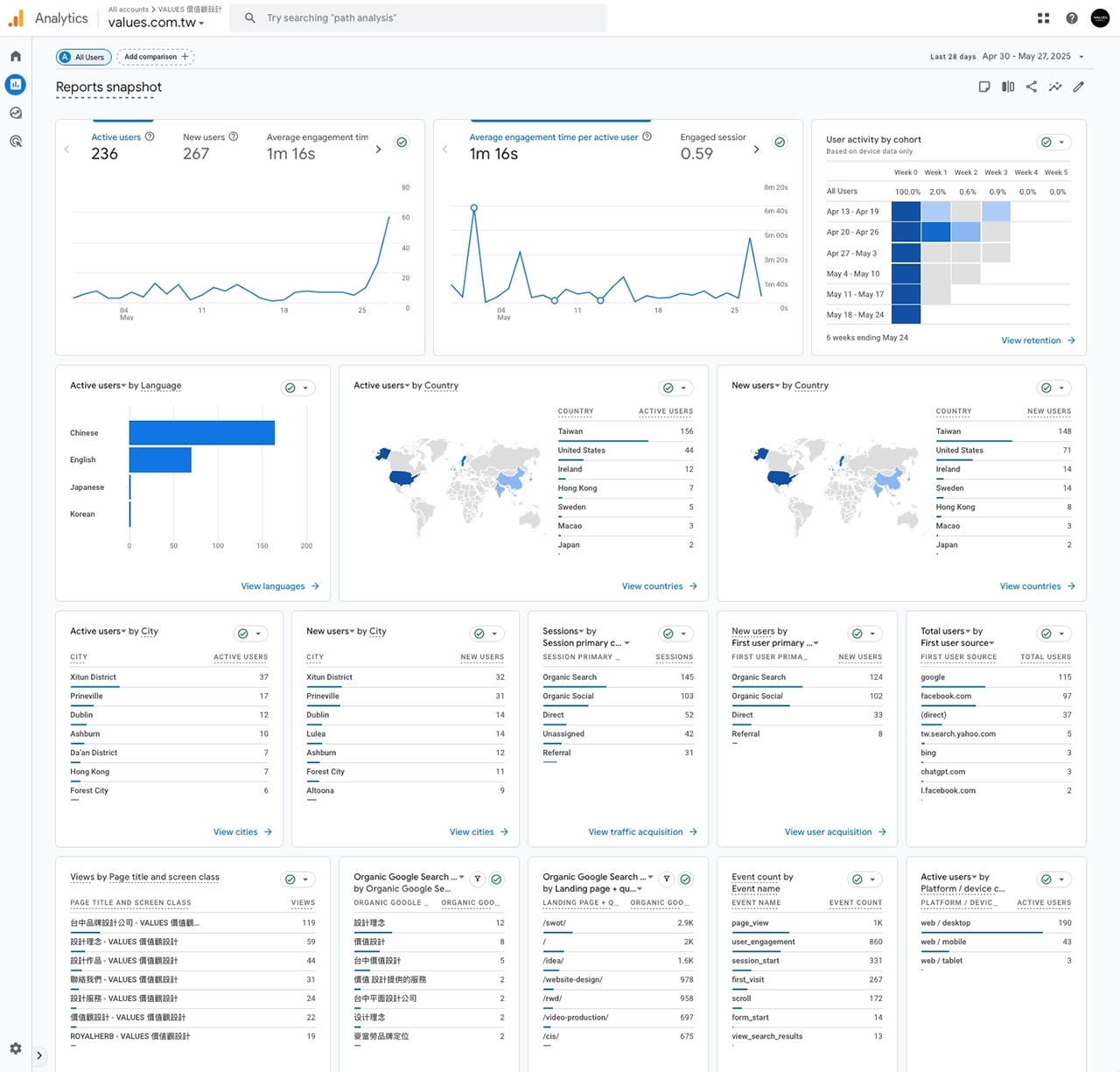 Google Analytics(グーグルアナリティクス)は、ウェブサイトの訪問者データを詳細に分析できるアクセス解析ツールであり、最も代表的なGoogleマーケティングツールの一つです。